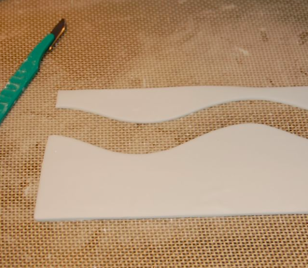 Um efeito simples de se fazer, pode utilizar cortadores redondos e sobrepor as bolinhas ou cortadores ovais e cortar da forma como mostra em baixo na imagem, também pode utilizar o cortador de escamas e montar as peças conforme o gosto ou utilizar o molde de silicone.